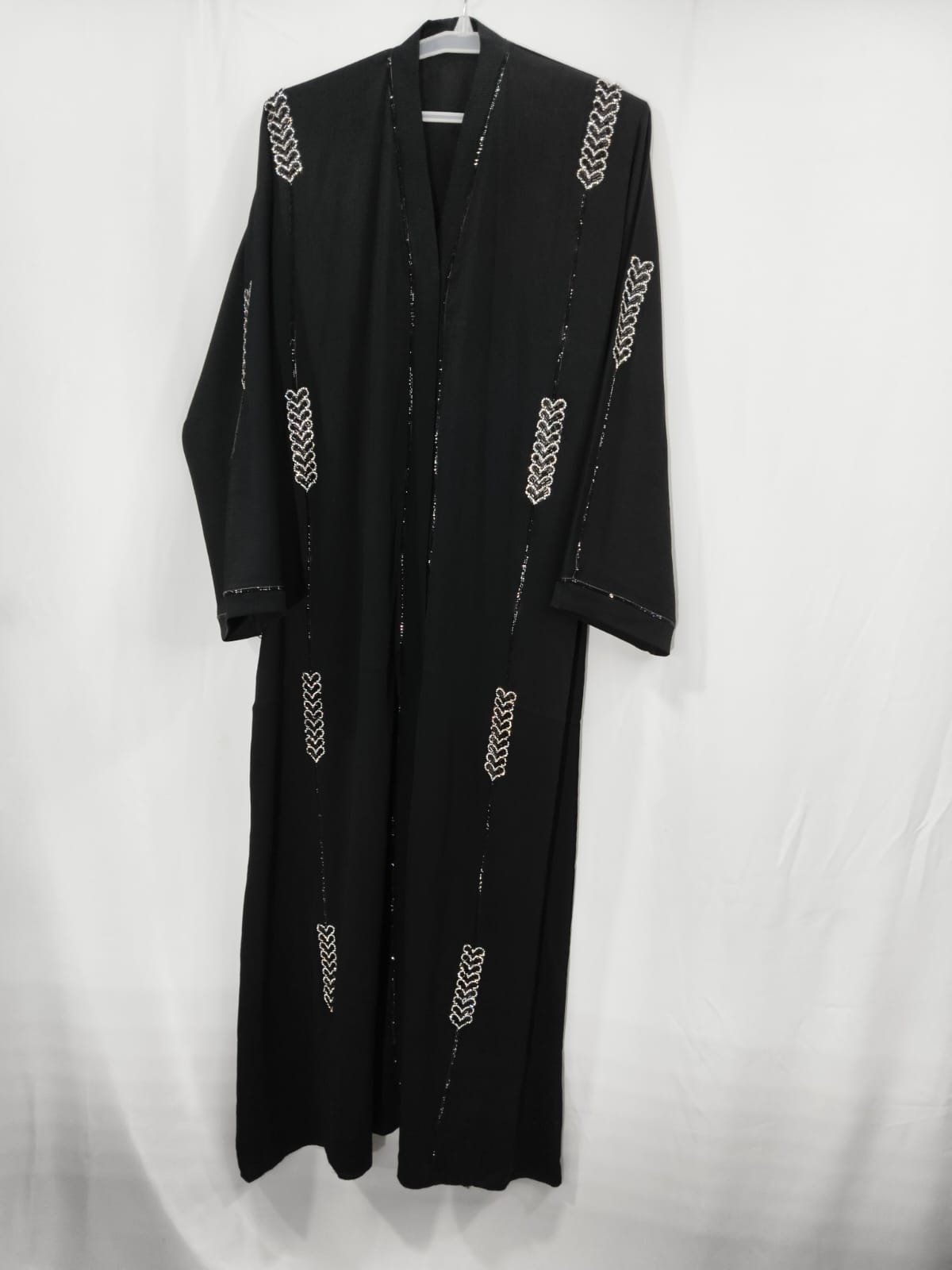 The Dubai Fancy Lace Abaya stands out for its intricate lacework, which adds a touch of grace and charm to its flowy silhouette. The delicately embroidered patterns are inspired by the rich cultural heritage of Dubai, giving it an artistic yet contemporary appearance. Crafted from high-quality fabrics, the abaya is lightweight, durable, and designed to drape beautifully for a flattering fit. Whether worn during festivities, formal gatherings, or casual outings, it guarantees a standout presence everywhere.