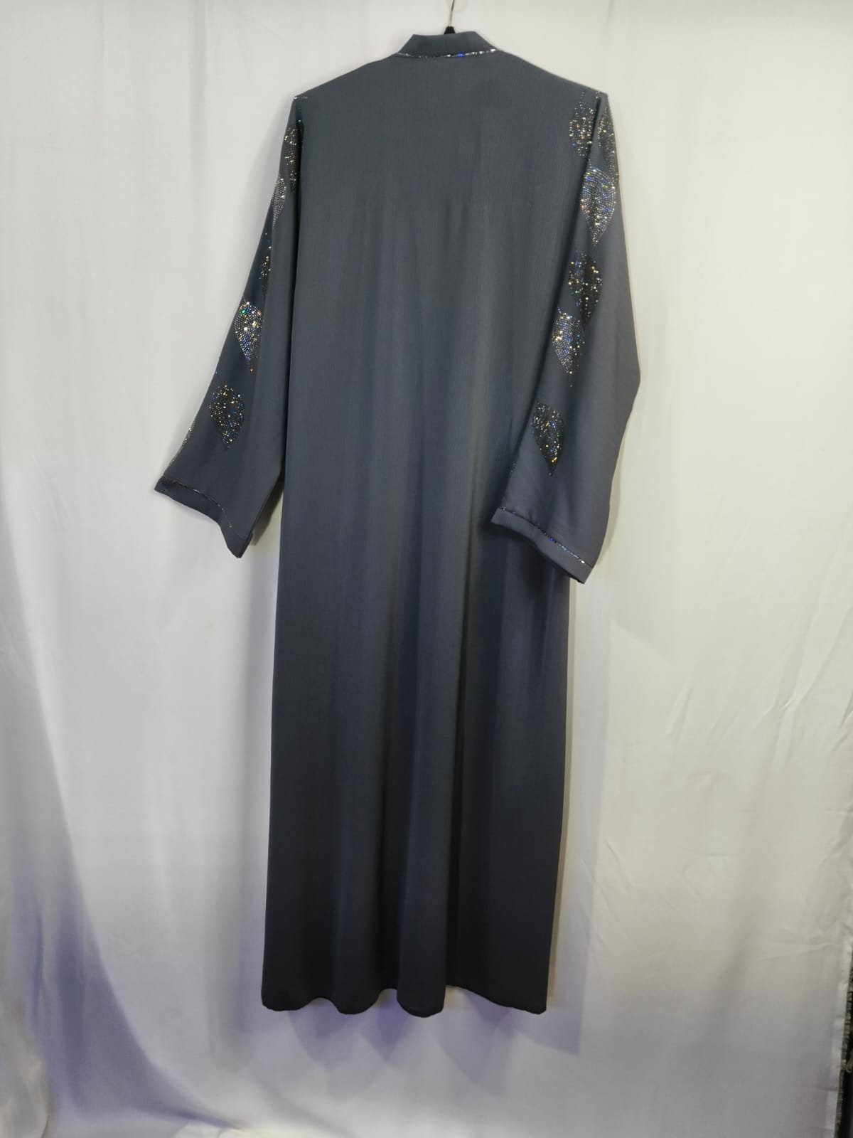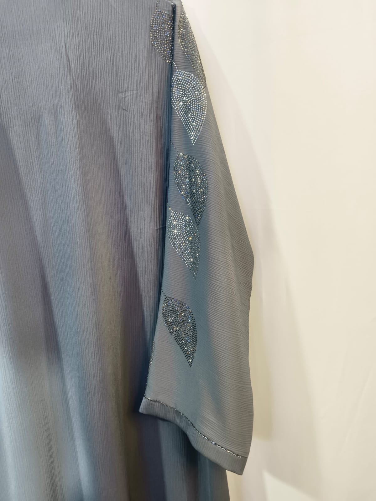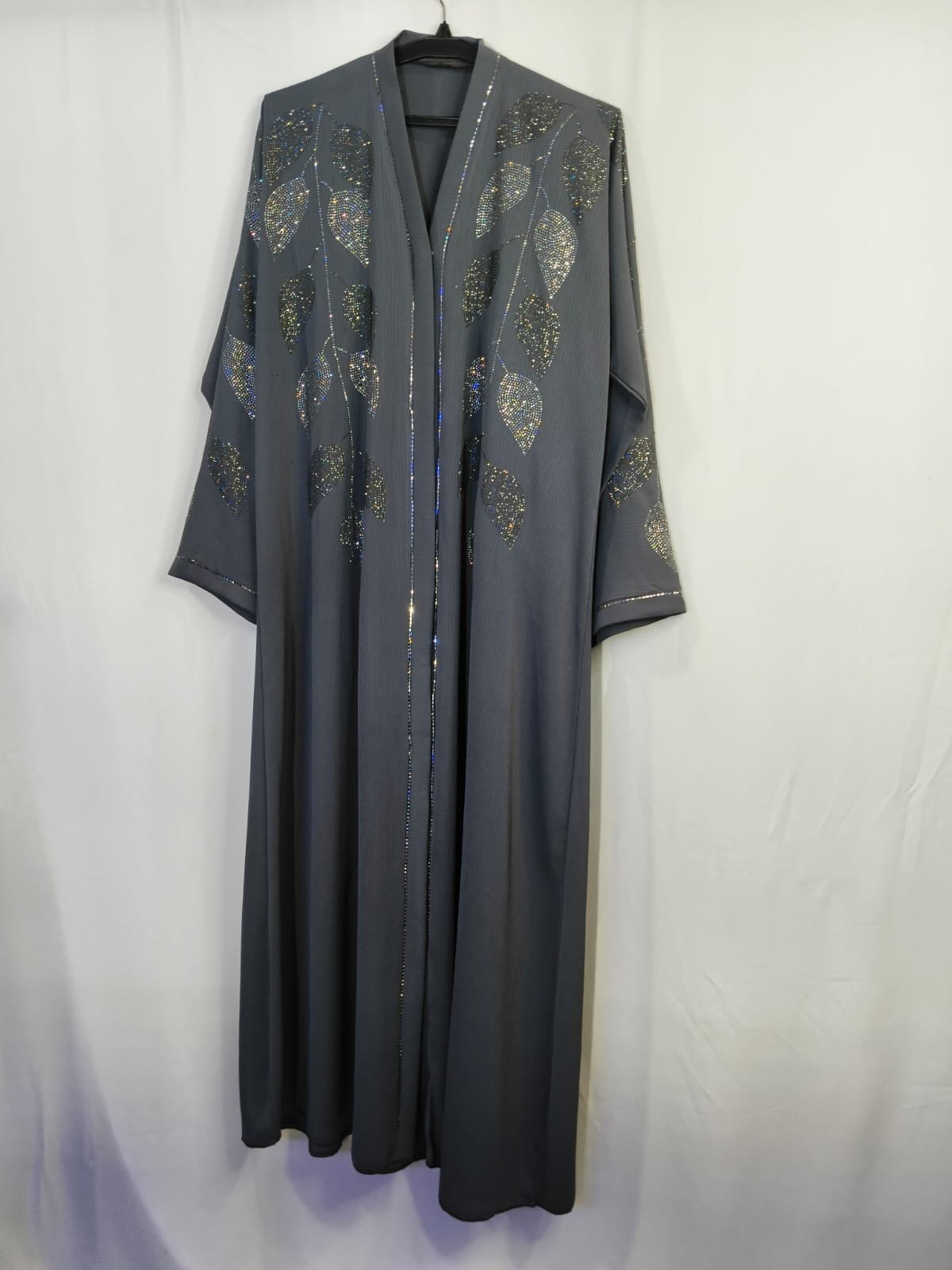 Discover the perfect blend of tradition and contemporary design with our exquisite leaf design stone abaya. Meticulously crafted to elevate your style, this abaya is a testament to elegance and refinement. The intricate leaf patterns adorned with shimmering stones effortlessly capture the essence of modern sophistication while staying true to timeless abaya fashion.